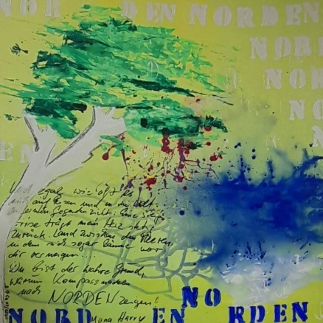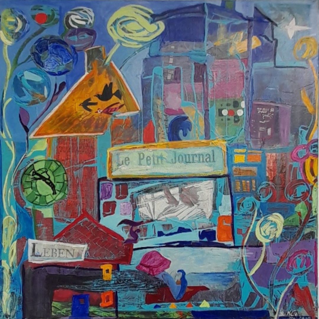 Malen ist für mich Entspannung, Konzentration und Begeisterung. Die Freude an Farben, inspirierende Texte, Assoziationen aus meinem Lebensumfeld, spannendes Material, all das kann Ausgangspunkt für ein neues Bild sein. Leuchtende Acrylfarben, die Kombination von Schrift und Text und die Zusammenstellung von Material und Bildgestaltung zu lebendigen Collagen sind
